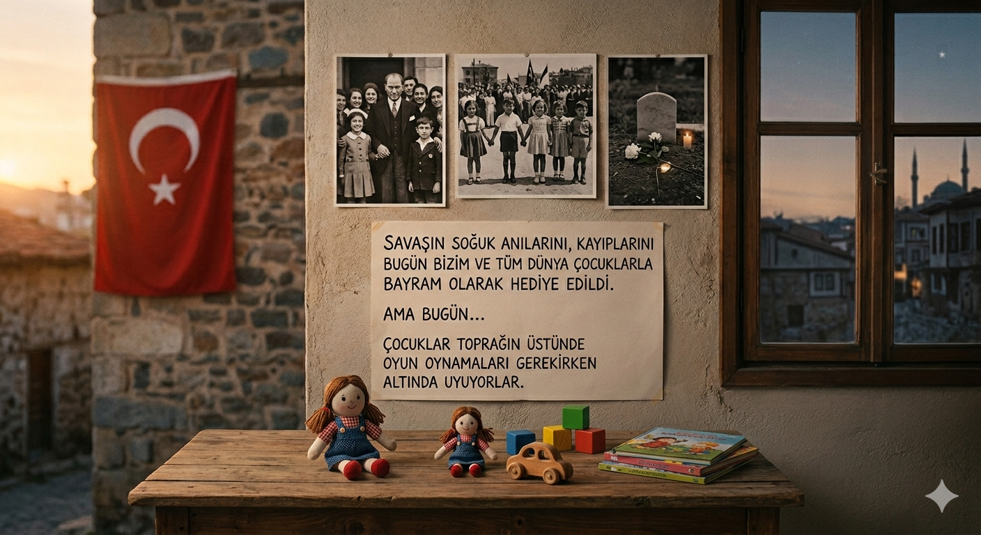 Oysa biz, onlardan çok daha önce, 1920’de, henüz kendi yaralarımızı sararken umudumuzu çocuklara bağlamıştık. Mustafa Kemal Atatürk; o yorgun insanların tek yaşama sebebi ve geleceğin tek ışığı olarak gördüğü evlatlarımıza bu bayramı hediye ederken, savaşın soğuk anılarını ve büyük kayıpları bugün bizim ve tüm dünya çocukları için bir barış bayramına dönüştürmüştü. O, çocukları sadece birer birey değil, küllerinden doğan bir milletin en kıymetli hazinesi olarak görmüştü.